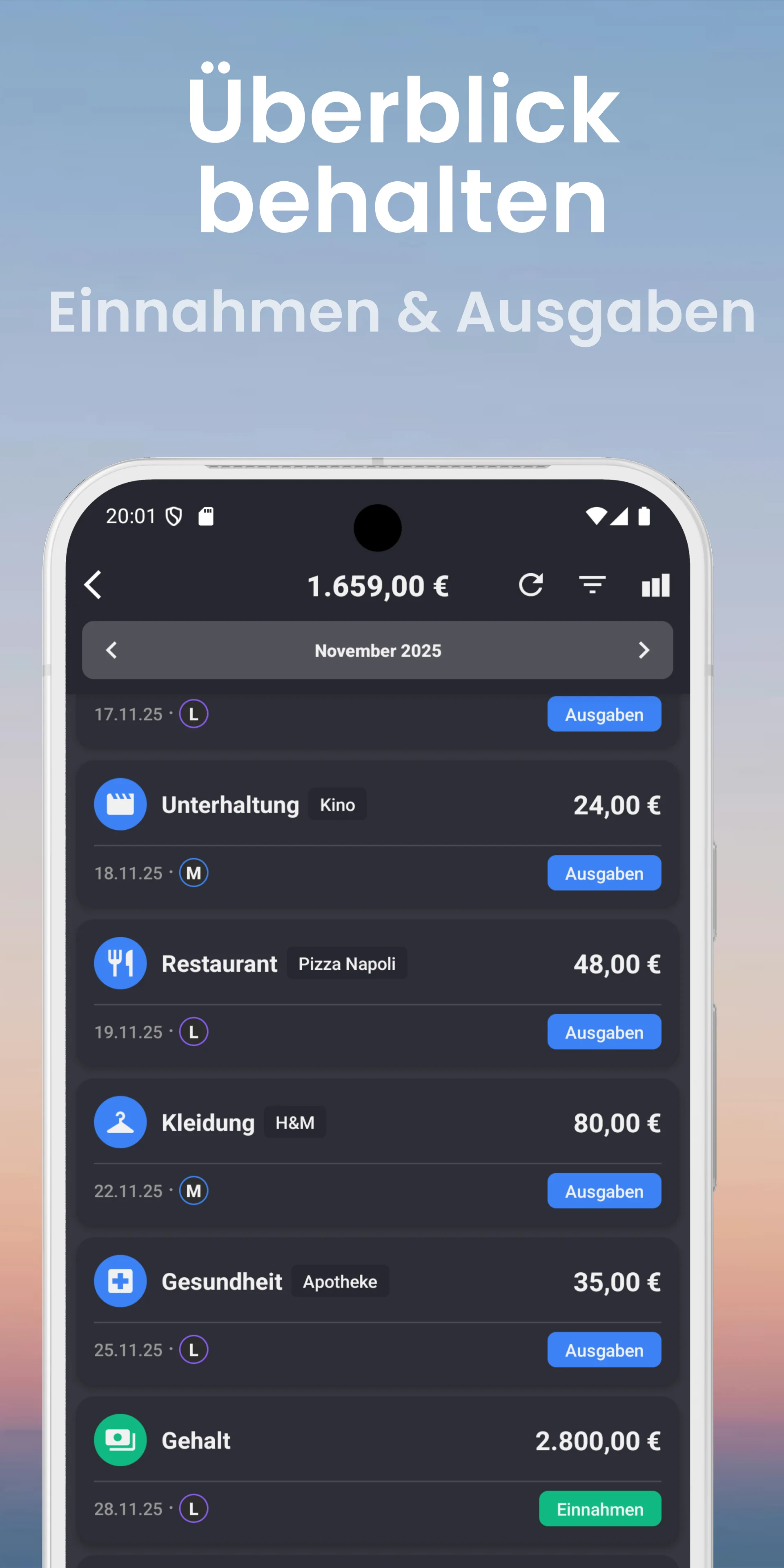 Erstelle eigene Kategorien, um deine Ausgaben genau so zu organisieren, wie du es möchtest.
